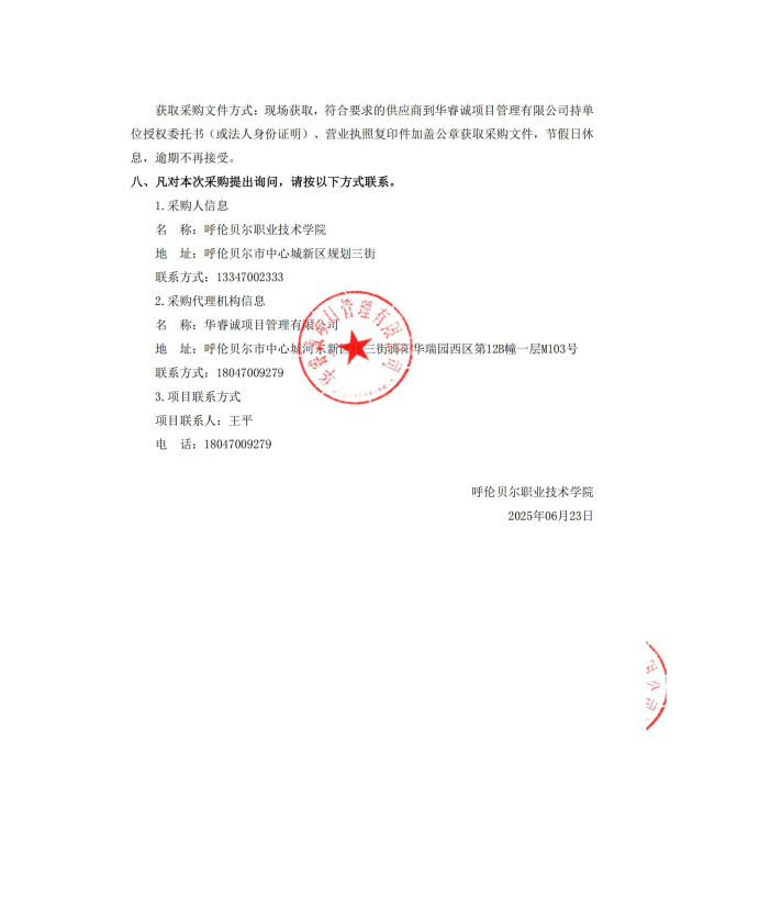 呼伦贝尔职业技术学院设备采购项目询价公告
