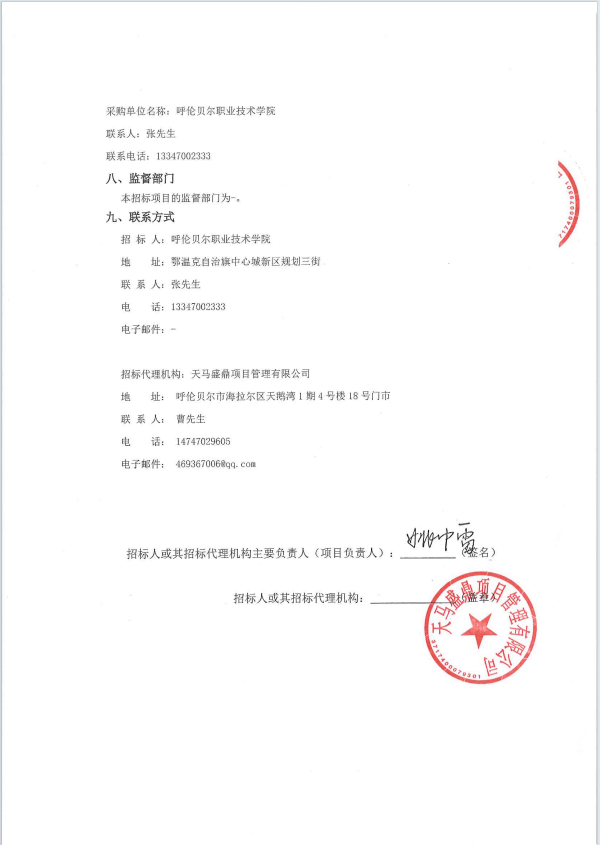 呼伦贝尔职业技术学院设备采购项目询价公告(二次)